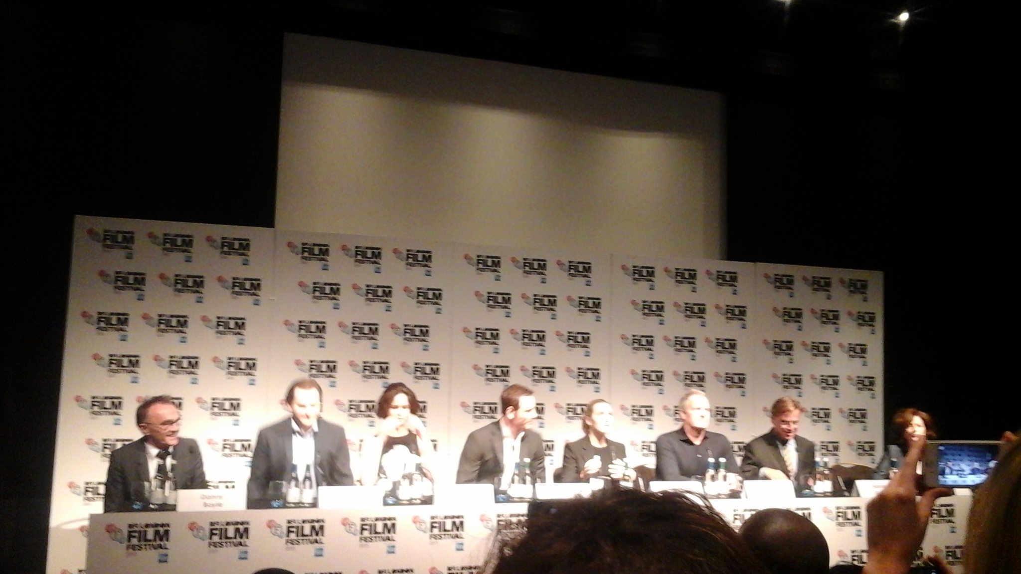Maysa Moncao attended the press conference at the London Film Festival for the film, Steve Jobs. From left of the photo to right: Danny Boyle, Michael Stuhlbarg, Katherine Waterston, Michael Fassbender, Kate Winslet, Jeff Daniels, Aaron Sorkin.