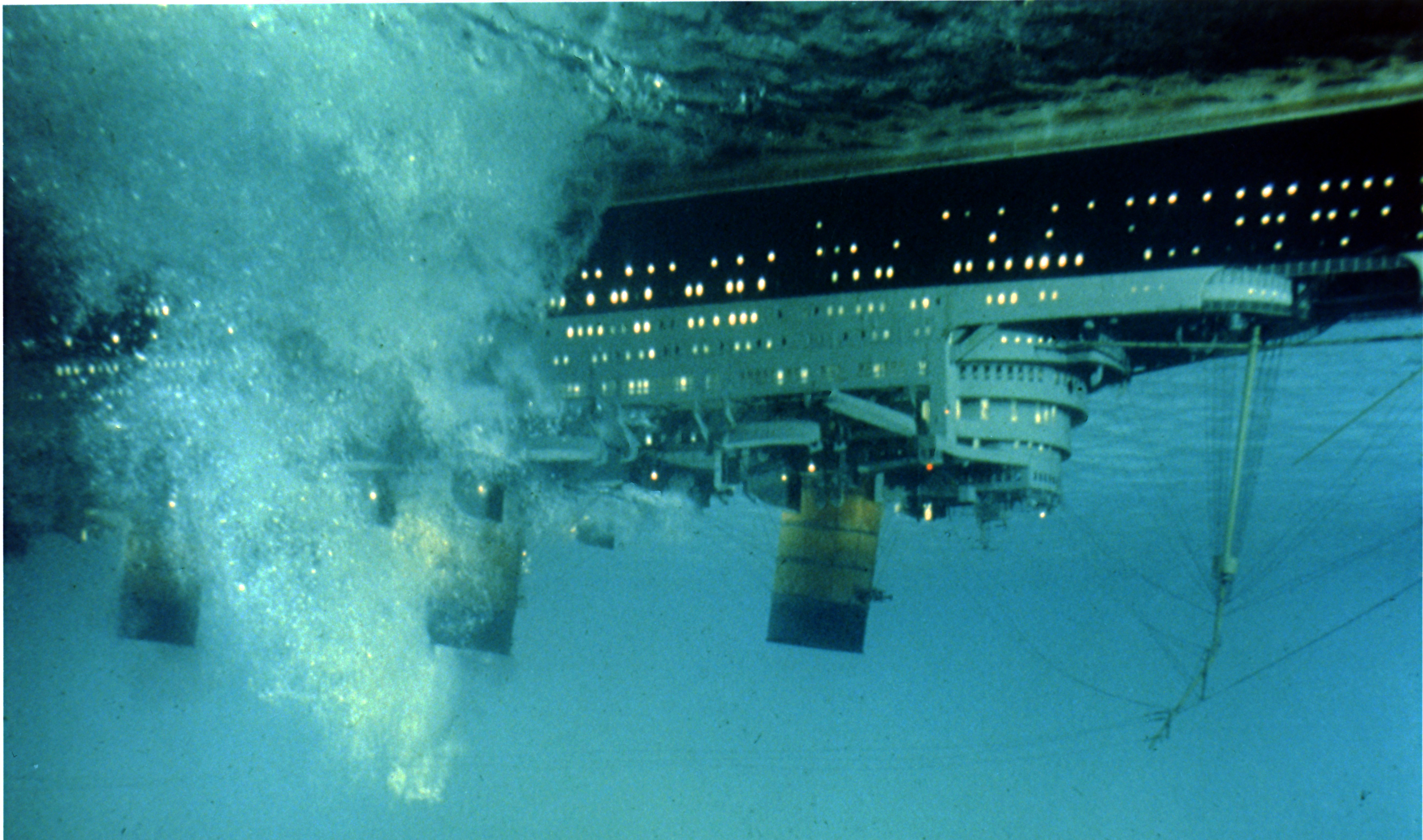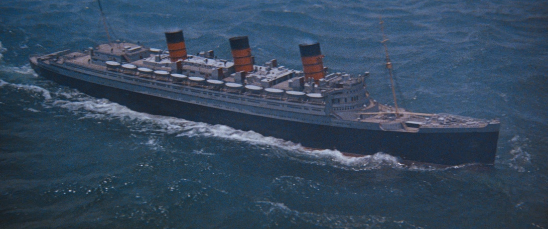 I had to find out. So I was straight up to Rugby Library the next day, head buried in film reference books. (For those who want to know, an article in the American Cinematographer journal explains the complicated set-up. Essentially, the dining salon set was built to be raised mechanically, with tilting cameras completing the illusion of disaster).
