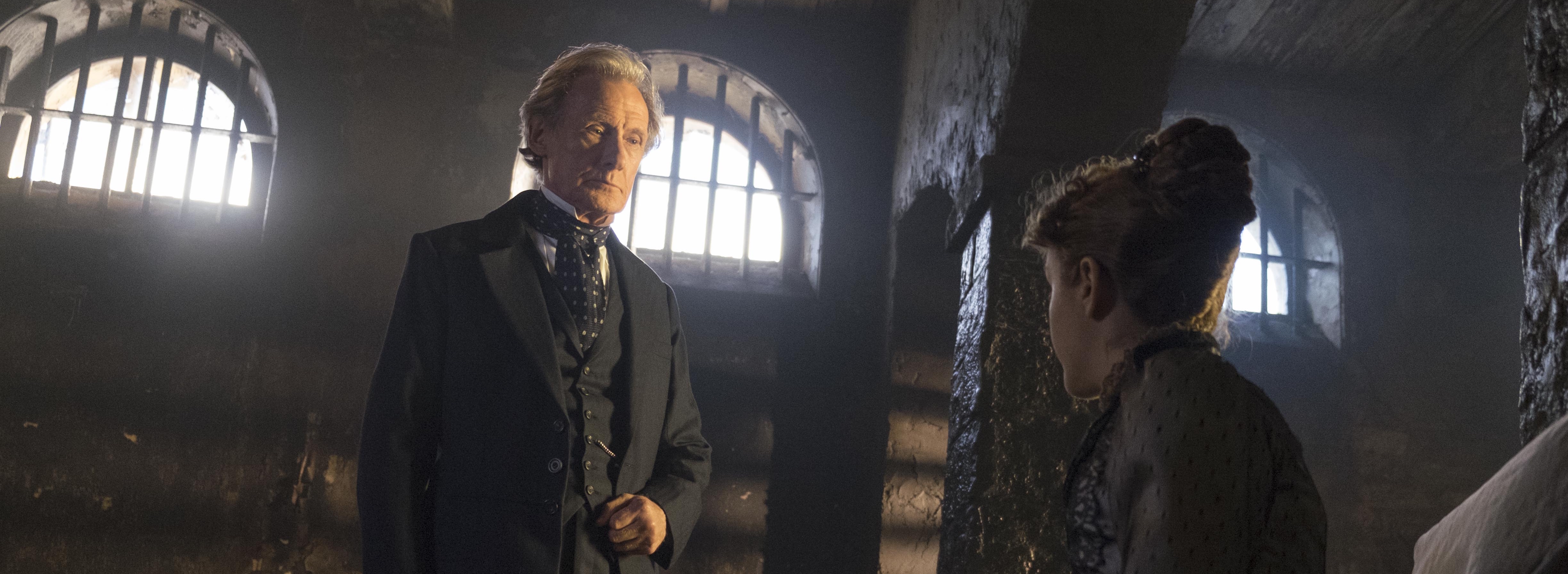 It helps that he plays well alongside the mightily impressive Olivia Cooke, here a chimera of psychology as Lizzie. This huge-eyed, expressive actress inhabits the same world on film as Lillian Gish did in Broken Blossoms (1919), playing another abused East End woman. Like Gish, Cooke has an indomitable spirit and in her scenes with Nighy, we feel the force of conviction as someone fights for justice, revealing the most painful of childhood memories in the process.