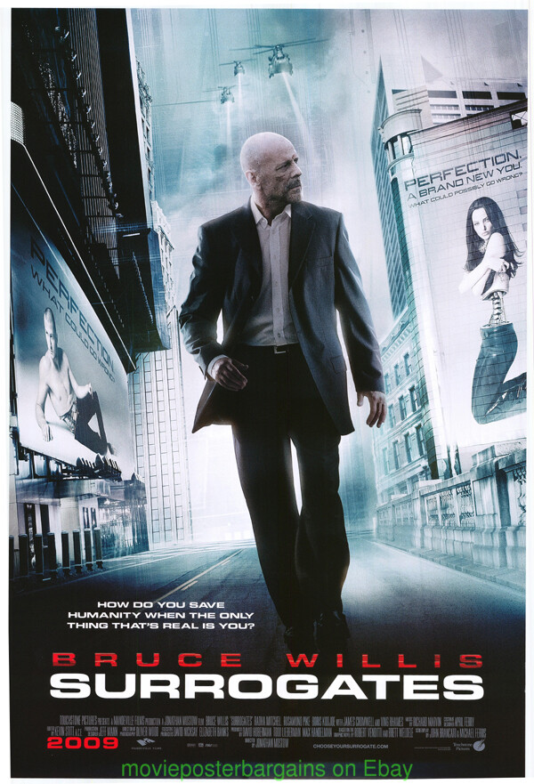 (Partly from IMDb): Set in a futuristic world where humans live in isolation and interact through surrogate robots, FBI Agent Greer (Bruce Willis) – joined by his partner Peters (Radha Mitchell) – is forced to leave his home for the first time in years to investigate the murders of other people’s surrogates.