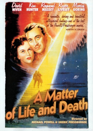 During WWII, British bomber captain Peter Carter’s (Niven) plane is hit by enemy fire killing his crew. In the final minutes as he crashes, ground crew Wren Joan (Hunter) picks up his distress call and the two fall in love as he narrates his last words. Bailing out suddenly, he somehow survives when he should have died, leading him to plead his case to remain living in a celestial court, watched over by a jury and observers of the great and the good of history.